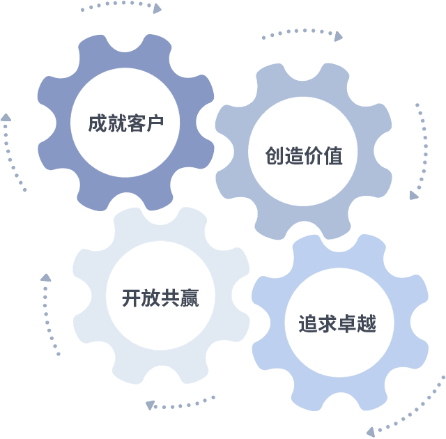 成就客户是一切决策的出发点,,,,创造价值是衡量所有工作的标准,,,追求卓越是九游会j9做事做人的态度,,,,开放共赢是九游会j9的格局也是最终的结果。。。。价值观的齿轮环环相扣,,推动着组织里的每个人不断向前。。
